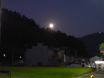 バイクでの帰り道はひんやり、空にはでっかい月、いつの間にかすっかり秋です。