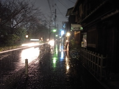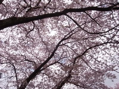 自転車で走ると地面の花びらはもう一度舞い上がり、服や靴は少し染まる。