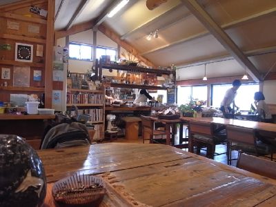 にわにいるにわとり(四羽だけれど)、かわいい丸い窯、屋根に続く階段(!?)。また、空いているときに来てみたい。